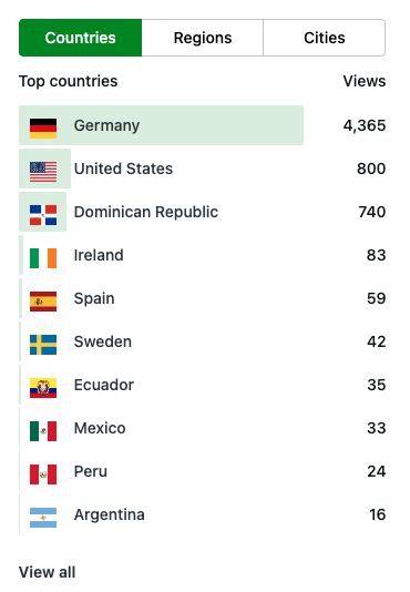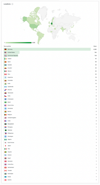 6,287 usuarios recurrentes han visitado nuestro entorno. A continuación el top10 de los mismos siendo Alemania el pais con mayor presencia con mas de 4,000 visitantes