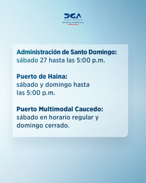 ⚠️ Te recomendamos planificar tus gestiones con tiempo.#AduanasRD #HorarioExtendido pic.twitter.com/DiEupFHkQb