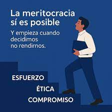 En un trabajo o gobierno meritocrático, un funcionario es promovido a un cargo superior porque ha demostrado eficacia y resultados, no porque sea amigo o familiar de alguien con poder.