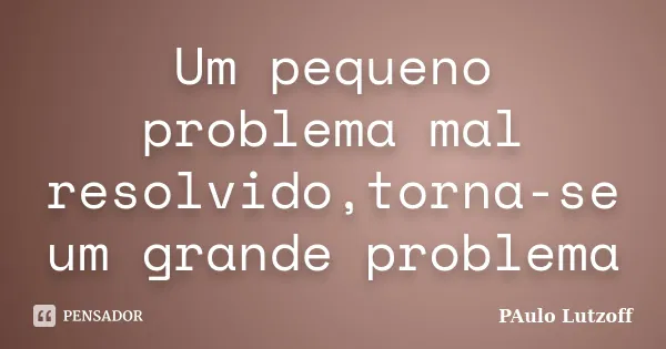 “NO EXISTEN LOS PROBLEMAS “PEQUEÑOS” hay problemas .. Implica que incluso los problemas que a primera vista parecen insignificantes pueden tener un impacto significativo o CONVERTIRSE Y SER LA RAÍZ de problemas mayores.