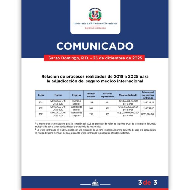 | 2025 | MIREX-CCC-LPN-2025-0014 | WorldWideSeguros | 796 | 965 | RD$2,750,000,000.001por 4 años | US$3,500.002 |