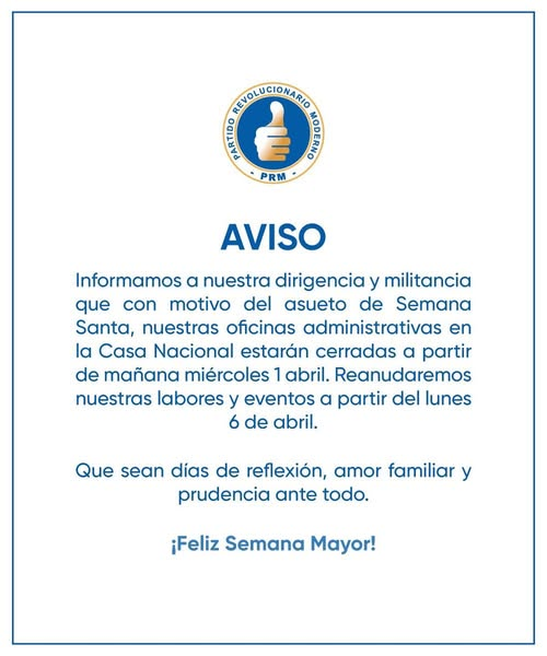 Aviso | Informamos el cierre de nuestras oficinas en la Casa Nacional por Semana Santa.