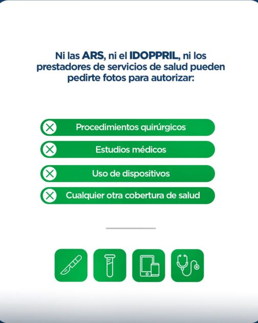 Gracias a la gestión DIDA–SISALRIL, ninguna ARS, el IDOPPRIL ni los prestadores pueden pedirte fotos para aprobar cirugías, estudios o servicios.