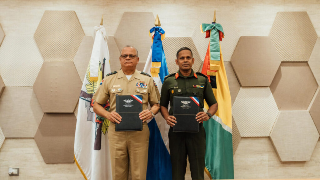 El acuerdo, que fue rubricado por el ministro de Defensa dominicano, teniente general Carlos Antonio Fernández Onofre, ERD, y el brigadier Omar Khan, jefe de la Fuerza de Defensa de Guyana, establece un marco de cooperación mediante el cual las instituciones involucradas se comprometen a enfrentar desafíos comunes, como el tráfico ilícito en el sector marítimo y las crecientes amenazas cibernéticas.