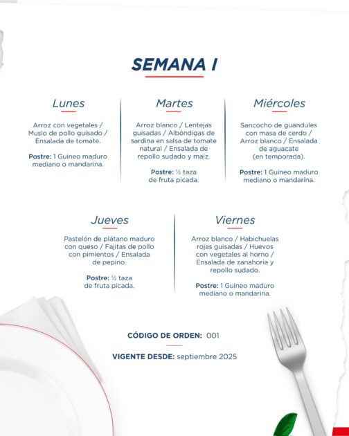 Les compartimos el menú escolar correspondiente a la semana del lunes 29 de septiembre hasta el viernes 03 de octubre del 2025 😋🍽️