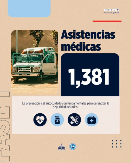 En el boletín consolidado de la primera fase del Operativo Conciencia por la Vida, Navidad y Año Nuevo 2025-2026 se registra que unas 1,381 personas recibieron asistencia médica y unas 15,686 fueron asistidos en las vías para un total de 17,067 asistencias realizadas al público.