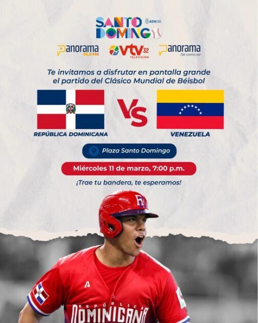 La Alcaldía del Distrito Nacional informó este martes que proyectará en pantalla gigante el juego del Clásico Mundial de Béisbol entre República Dominicana y Venezuela el miércoles 11 de marzo a partir de las 7:00 de la noche en la Plaza Santo Domingo, ubicada en la avenida George Washington con Abraham Lincoln.