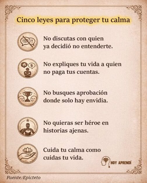 Según Epicteto, proteger tu calma es esencial porque la verdadera libertad no depende de lo que ocurre afuera, sino de cómo eliges responder a ello. Él enseñaba que muchas personas sufren no por los hechos, sino por sus juicios sobre ellos; por eso insistía en no discutir con quien no quiere entender, ni buscar aprobación externa. Cuidar tu paz interior significa enfocar tu energía solo en lo que puedes controlar —tus pensamientos, decisiones y acciones— y soltar todo lo demás, ya que allí nace una vida más serena, firme y consciente