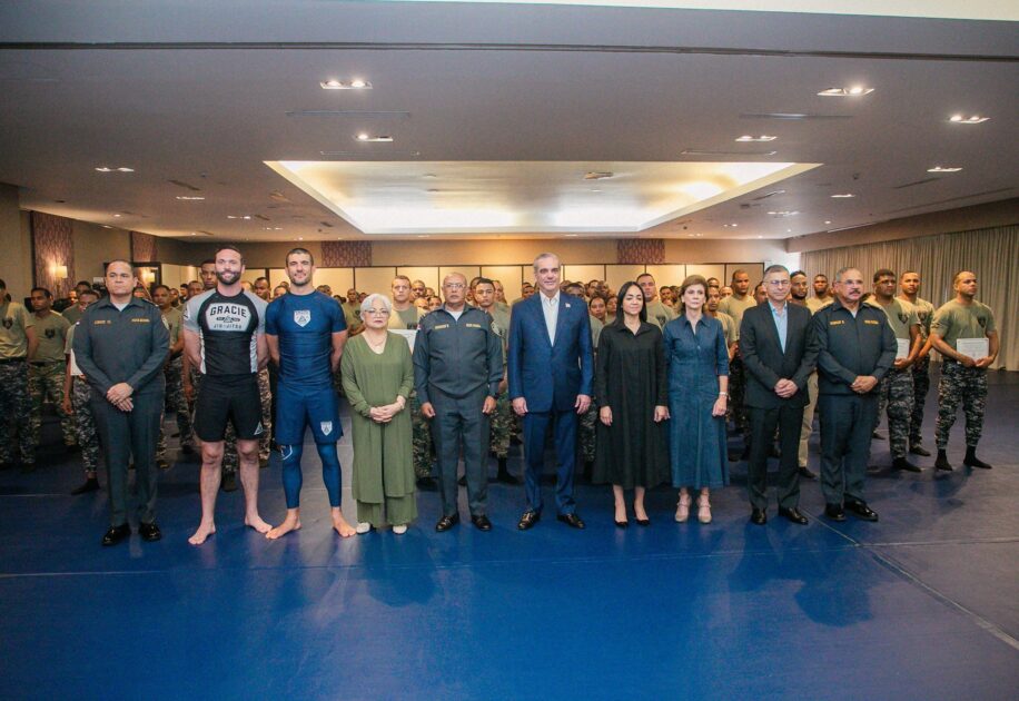 Como parte de la reforma policial, el Pdte. @LuisAbinader encabezó la clausura del curso Gracie Survival Tactics con miembros de la @PoliciaRD, @MDefensaRD y @MigracionRDo; e inició el curso de Instructores de Instructores del Sistema Táctico Básico Policial con @PoliciaColombia. pic.twitter.com/qOqsAdJFFU