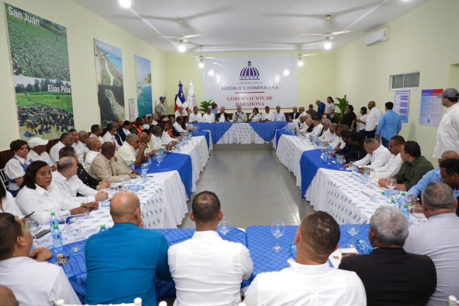 Al encabezar en Barahona una Mesa de Trabajo en la Gobernación Provincial junto a las principales autoridades locales, representantes de los cuerpos de socorro, líderes comunitarios y medios de comunicación, el presidente Abinader informó que se encuentra en la provincia evaluando los daños ocasionados por las lluvias que han afectado durante varios días a la región Enriquillo, impactando severamente sectores como la agricultura, las vías de comunicación, especialmente los caminos vecinales, el comercio y la producción agrícola.