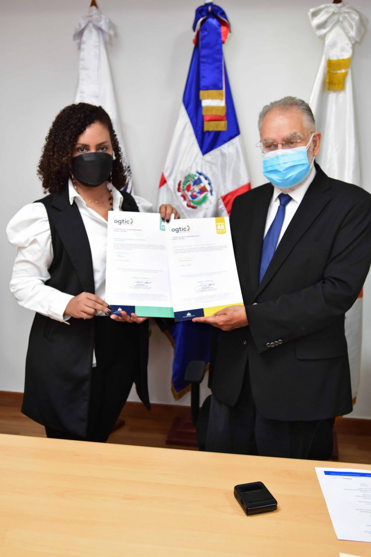 Las certificaciones fueron entregadas por el director general de la Oficina Gubernamental de Tecnología de la Información y la Comunicación (OGTIC), Pedro Antonio Quezada Cepeda, al ministro de Economía, Planificación y Desarrollo, Miguel Ceara Hatton.