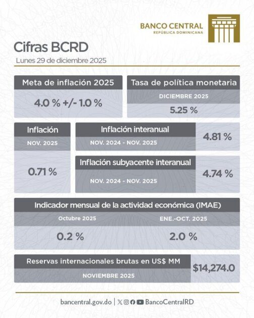 Banco Central de la República Dominicana @BancoCentralRD Nuestro objetivo principal es mantener la estabilidad de precios, por mandato Constitucional y la Ley Monetaria y Financiera No.183-02 Banco Central de la…