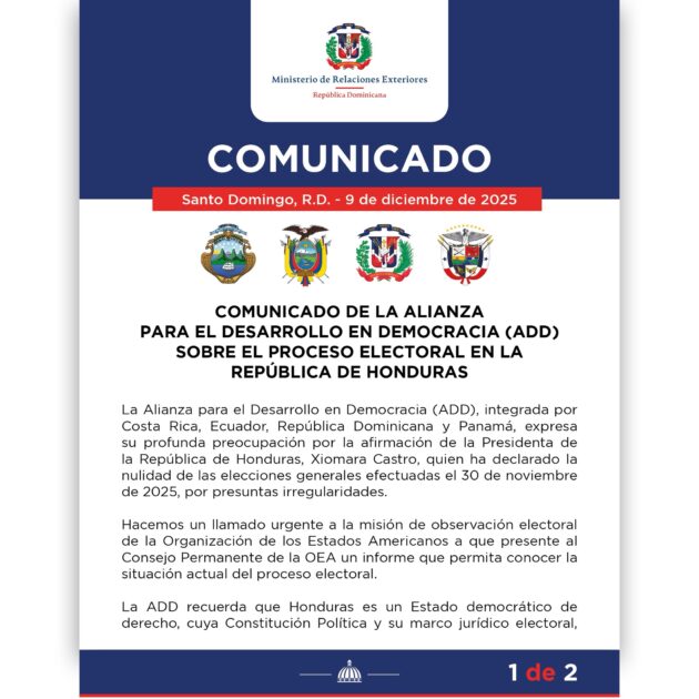 @MirexRD Comunicado de la Alianza para el Desarrollo en Democracia (ADD) sobre el proceso electoral en la República de Honduras