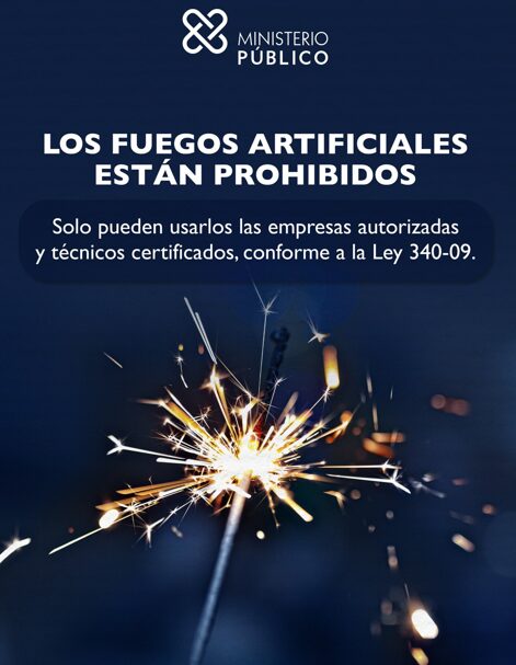 @ProcuraduriaRD La pirotecnia está prohibida para el público por la Ley 340-09, para el Control y la Regulación de los Productos Pirotécnicos. Solo puede ser utilizada por empresas autorizadas y técnicos certificados