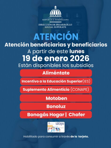 @SuperateRDO Informamos que ya se encuentran disponibles los fondos correspondientes al mes de enero 2026 para los siguientes subsidios