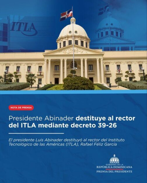 @LuisAbinader destituyó al rector del Instituto Tecnológico de las Américas (ITLA), Rafael Féliz García, mediante el decreto núm. 39-26
