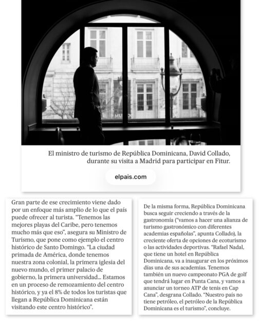 David Collado, Ministro de Turismo 2020-2028 https://twitter.com/DavidColladoM/status/2015013859753435573?s=20  @DavidColladoM - @PresidenciaRD –@ViceRDo – @MinpreRD – @JosePaliza – @CarolinaMejiaG – @LaVozDelPRM – @LuisAbinader – @RaquelPenaVice- @PRM_Oficial – @ElizabethMateo – @AlbertoCaminero – @FelixReynaE…