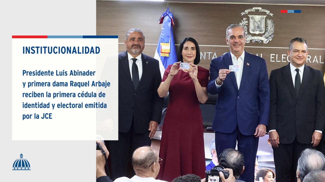 Presidente @LuisAbinader y primera dama reciben la primera cédula de identidad y electoral emitida por la JCE