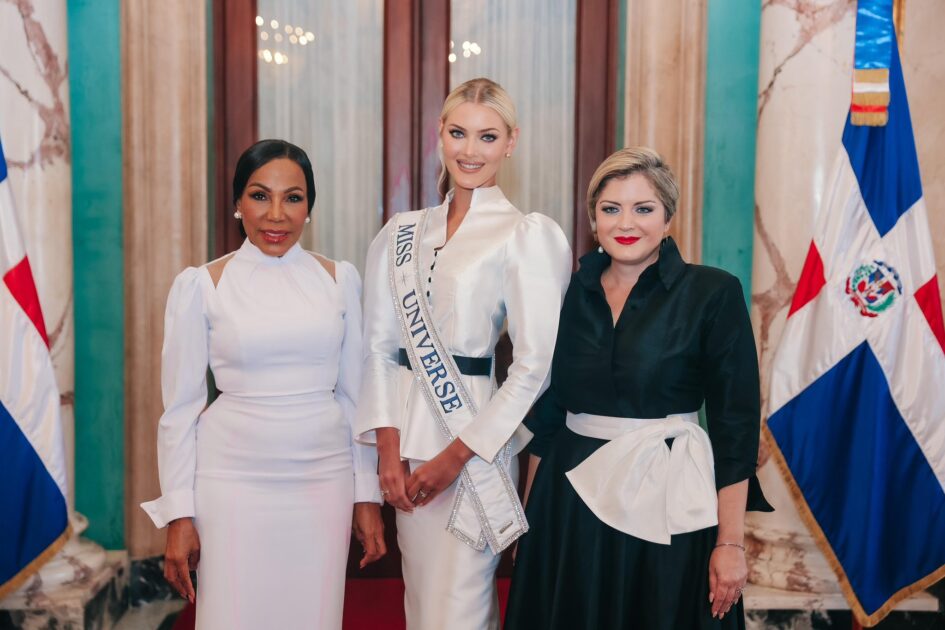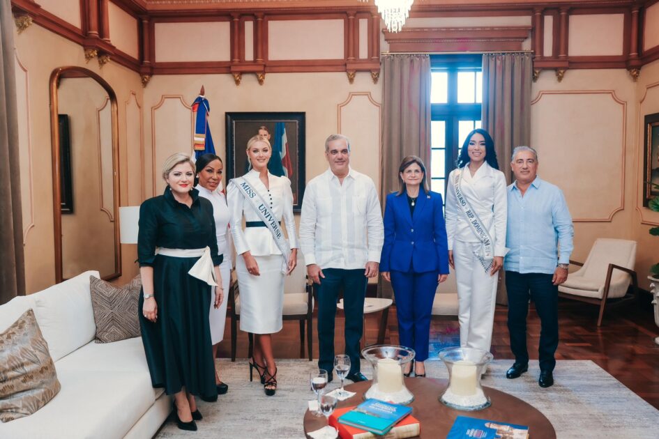 El Pdte. @LuisAbinader y la Vpdta. @RaquelPenaVice recibieron en visita de cortesía a Jennifer Ventura, Miss República Dominicana Universo 2025, y a Victoria Kjær, Miss Universo 2024.