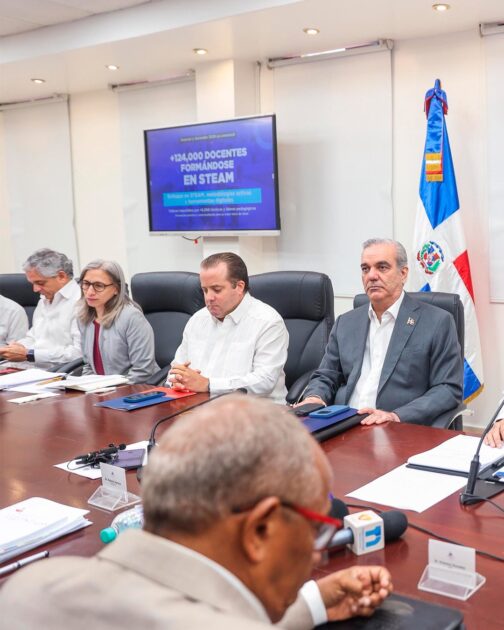 El Pdte. @LuisAbinader encabezó hoy, junto con el ministro de Educación, @LMDeCamps, una reunión de seguimiento a los preparativos del año escolar 2025-2026, en la que también participaron viceministros y directores de @EducacionRDo. pic.twitter.com/7iekvdC16C