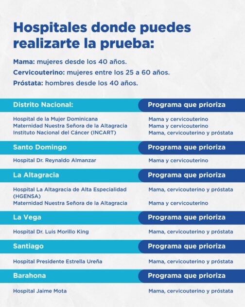 Acude al hospital más cercano en tu provincia y realiza tus chequeos preventivos próstata según tu edad. Las mujeres también pueden aprovechar para hacerse sus pruebas de cáncer de mama y cervicouterino.