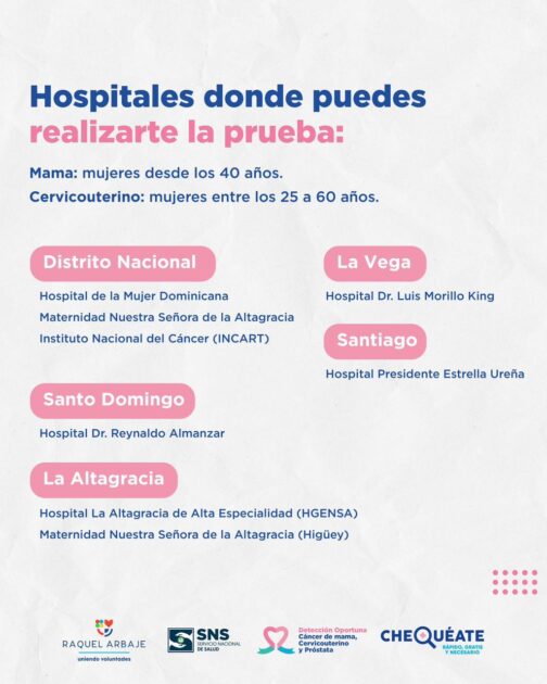 Mujer dominicana, tu salud es una prioridad. 💗 La detección oportuna del cáncer de mama y del cervicouterino puede salvar tu vida y brindar tranquilidad a tu familia.