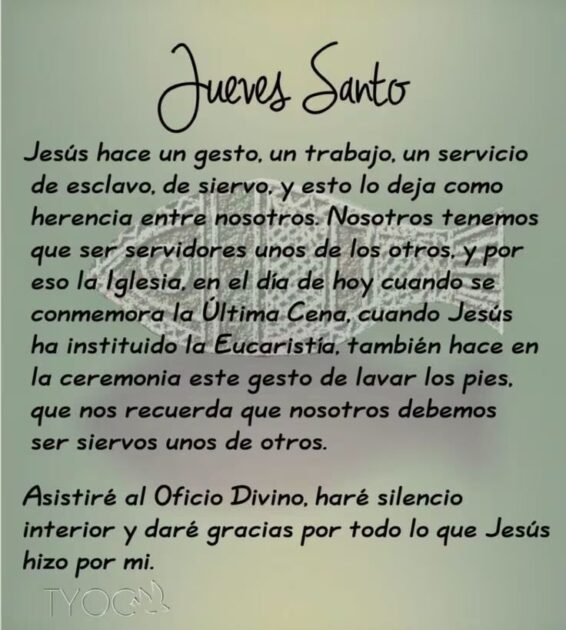 - Mandato: Jesús dijo: “Pues si yo, el Señor y el Maestro, he lavado vuestros pies, vosotros también debéis lavaros los pies los unos a los otros”.