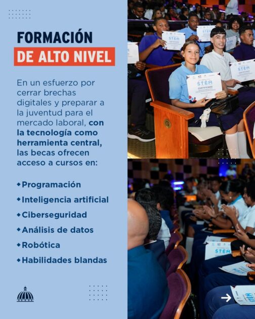 El @IndotelRD, con el Banco Mundial, Coursera, el Minerd y empresas aliadas, apuesta al talento joven entregando 500 becas en áreas clave como programación, inteligencia artificial, ciberseguridad y robótica, impulsando la innovación en el país. pic.twitter.com/VwHuRp5qIm