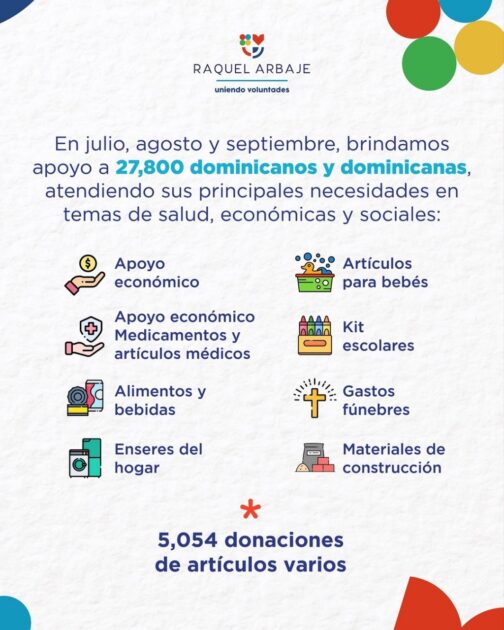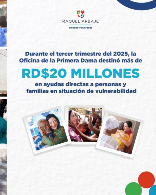 La primera dama, Raquel Arbaje, a través de su despacho, ha llevado esperanza y soluciones a más de 27,800 dominicanos con una inversión superior a RD$20 millones en salud, alimentación y vivienda. 💛