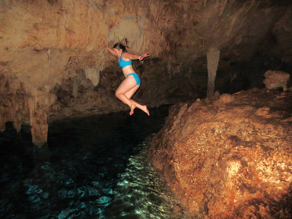 Manantiales de aguas cristalinas: La caminata incluyó un desvío hacia uno de los manantiales subterráneos (cenotes) del parque, donde algunos siempre logran darse un baño refrescante en aguas increíblemente claras.