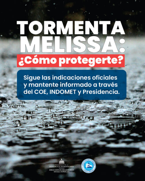 Desde la Dirección de Desarrollo Social Supérate hacemos un llamado a toda la población a mantenerse atenta ante el paso de la tormenta tropical Melissa.