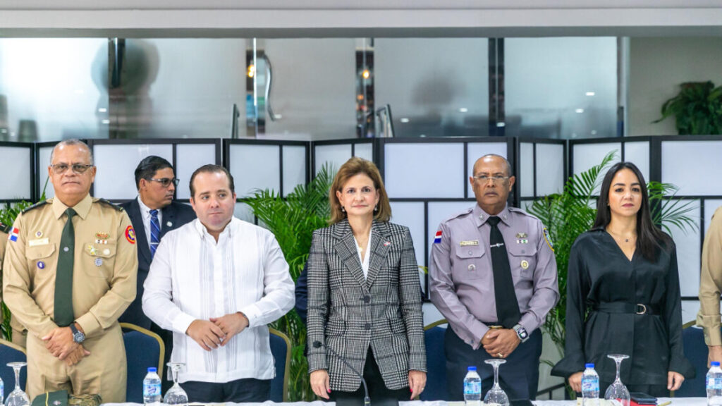 Acompañan también a la vicepresidenta el mayor general Ramón A. Guzmán Peralta, director general de la Policía Nacional; mayor general Jorge Iván Camino Pérez, comandante general del Ejército; vicealmirante Agustín A. Morillo Rodríguez.