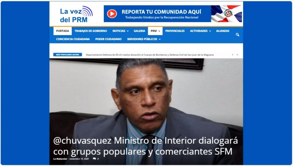 Posted inNOTICIAS Videos Video Resumen Jueves 19 de Noviembre 2020 Informaciones publicadas en www.LaVozDelPRM.org Posted by Yan Pan R November 19, 2020 La Voz Del PRM, Medio Informativo Oficial del Partido Revolucionario Moderno (PRM) 32 informaciones con propósito y respeto publicadas el Jueves 19 de Noviembre 2020 Comparte esto: Click to share on Facebook (Opens in new window) Facebook Click to share on X (Opens in new window) X Click to share on WhatsApp (Opens in new window) WhatsApp Click to share on LinkedIn (Opens in new window) LinkedIn Yan Pan R View All Posts Post navigation Previous Post @LuisAbinader entrega Centro Diagnóstico y Atención Primaria en MaoNext PostÁngel Rondón asegura que Jean Alain le ofreció acuerdo para acusar “dos o tres” del @PRM_Oficial